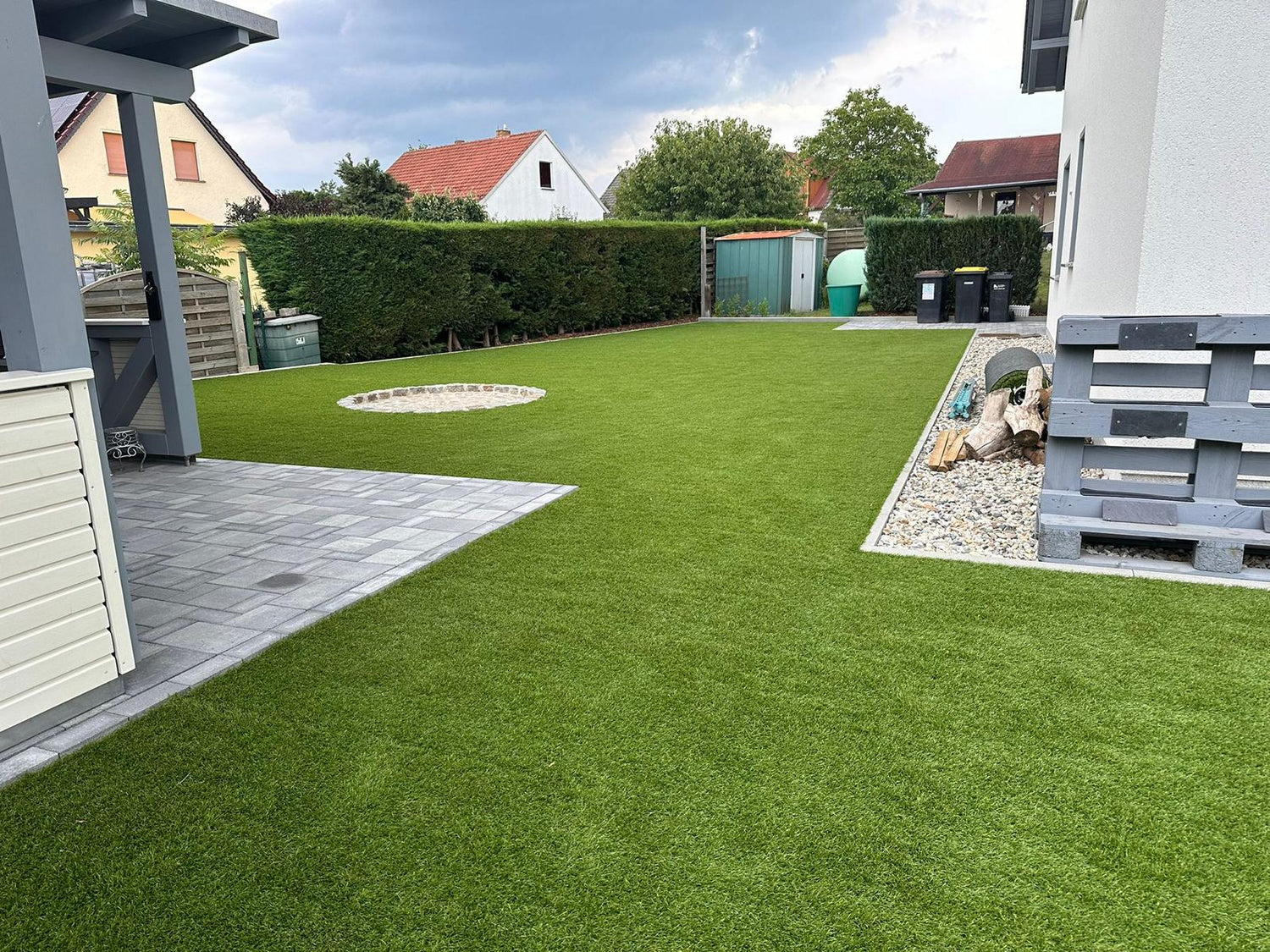 Durch diese sorgfältigen Arbeitsschritte wird sichergestellt, dass der Kunstrasen nicht nur optisch ansprechend, sondern auch funktional und langlebig ist. Eine professionelle Verlegung garantiert zudem, dass der Kunstrasen pflegeleicht und widerstandsfähig gegenüber den unterschiedlichen Witterungsbedingungen ist.