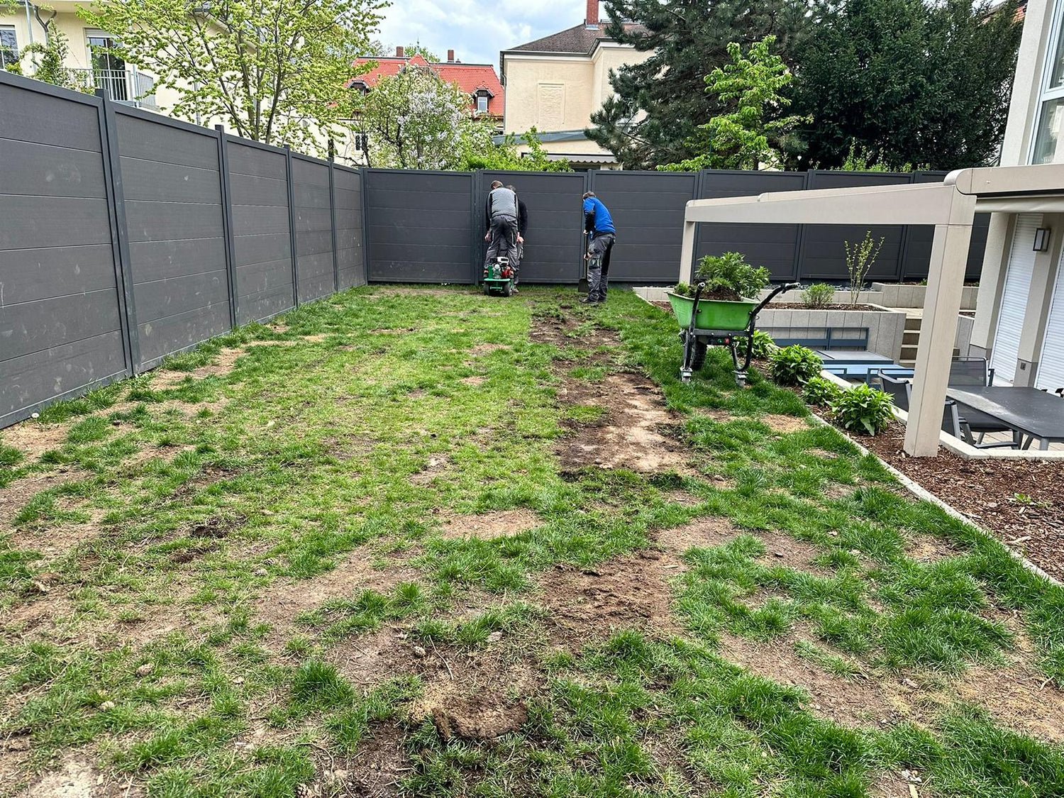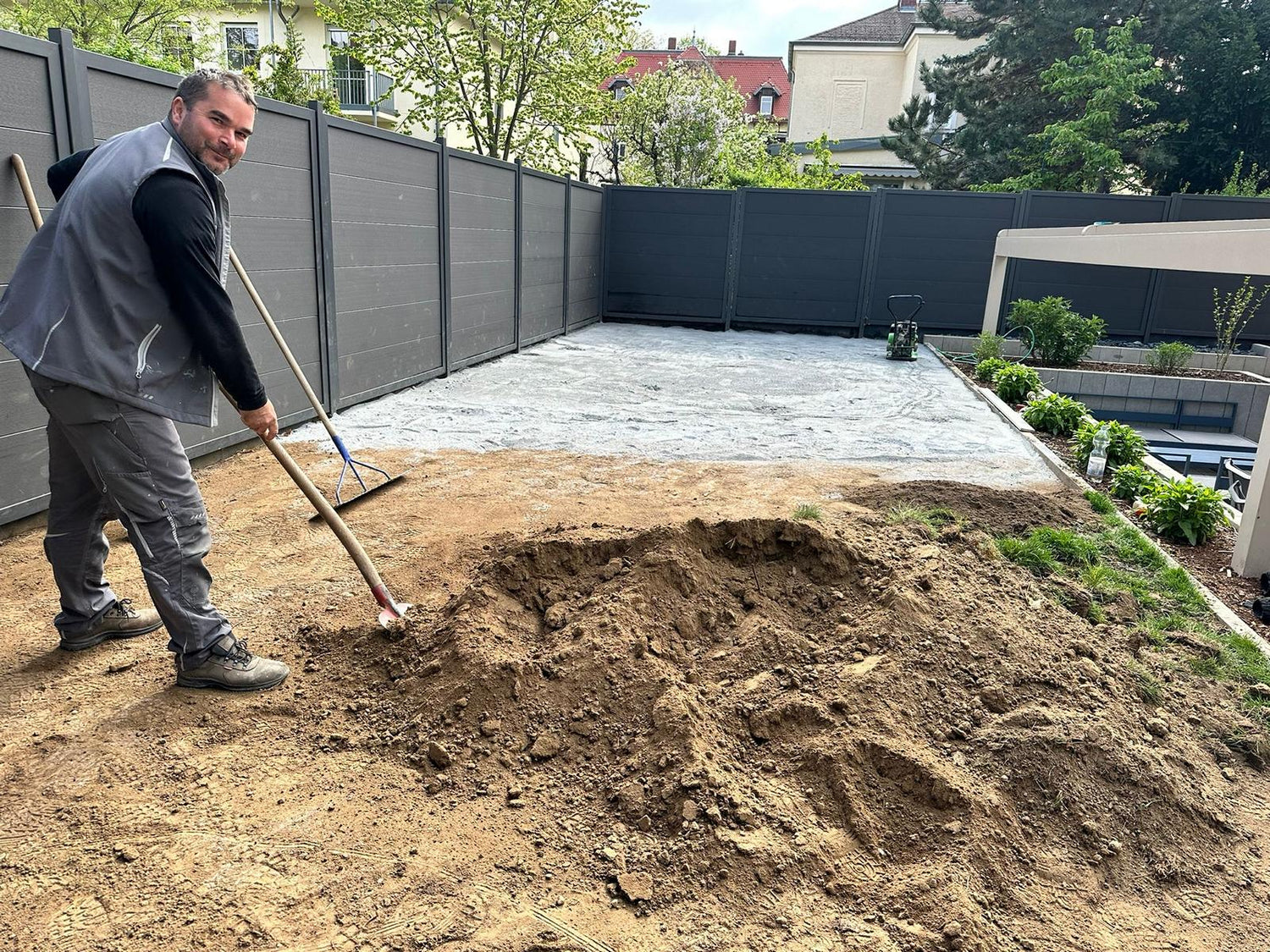 Boden entfernen: Der bestehende Rasen, Unkraut und andere Materialien werden entfernt. Der Boden wird bis zu einer Tiefe von etwa 5-10 cm ausgegraben.