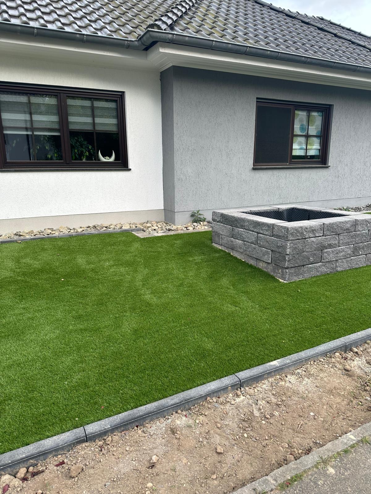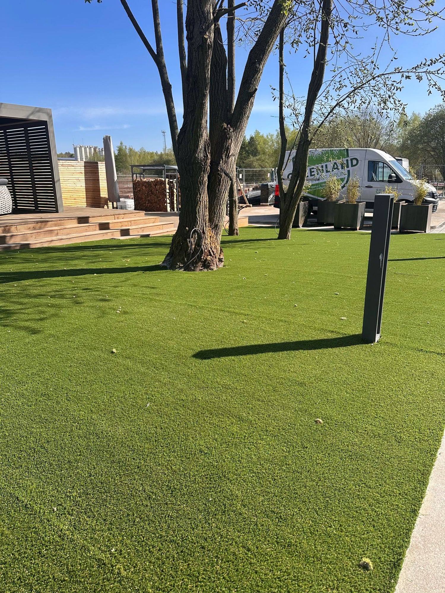 - Dekorative Flächen: Kunstrasen kann auch in kleineren Bereichen, wie unter Bäumen oder als Einfassung für Beete, verwendet werden, um stilvolle grüne Akzente zu setzen.